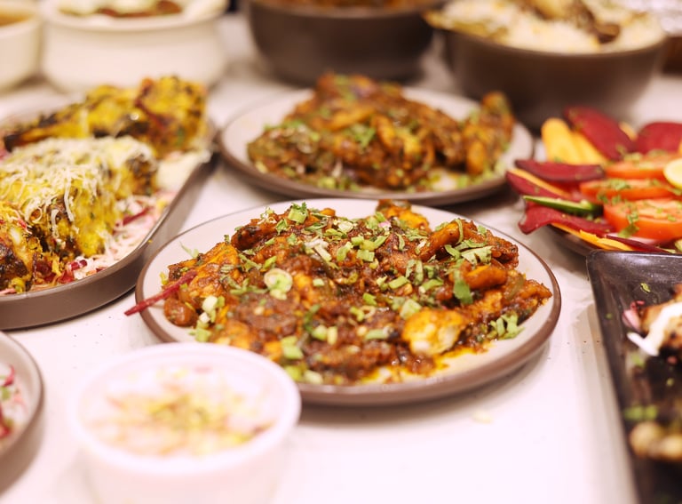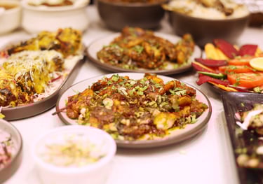 Delicious and customizable catering services for events, offering a variety of veg and non-veg dishes served professionally.