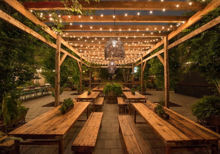 Scenic outdoor dining with fresh air, greenery and a wide menu of flavorful dishes under the stars.